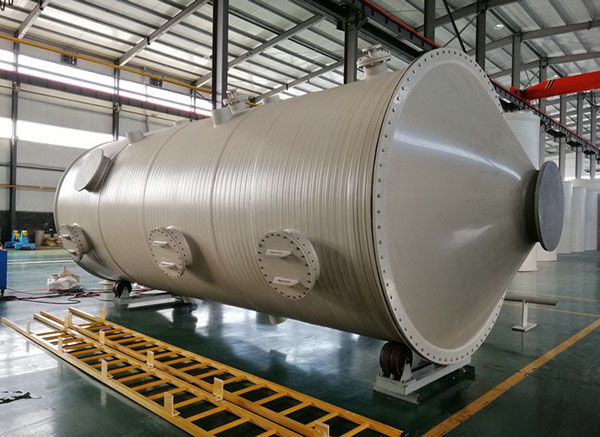 ①PP凈化塔中需要有填料層的設計,該填料層有其適合的高度,φ50毫米的塑料環或者有許多個面的空心球體,這樣的作用在于塔中的堿液能與酸霧增大接觸面積,并且長時間的接觸,很自然的就增加了吸收的效率了,化學反應后生成的廢氣從凈化塔的頂風冒放掉。